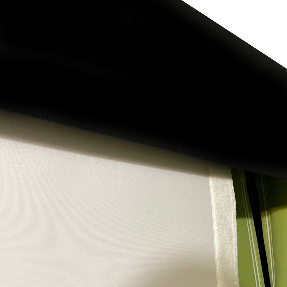 - Sides: Raw fabric / knife cut or loop velcro on front (allows retractable curtains to attach directly to the screen)